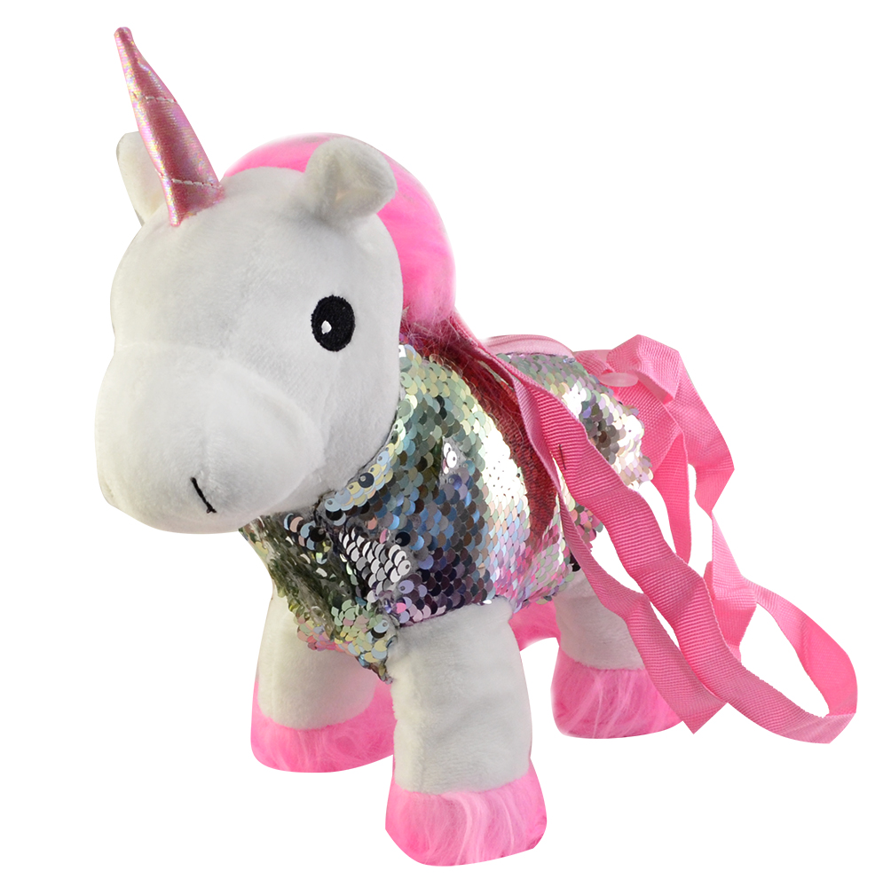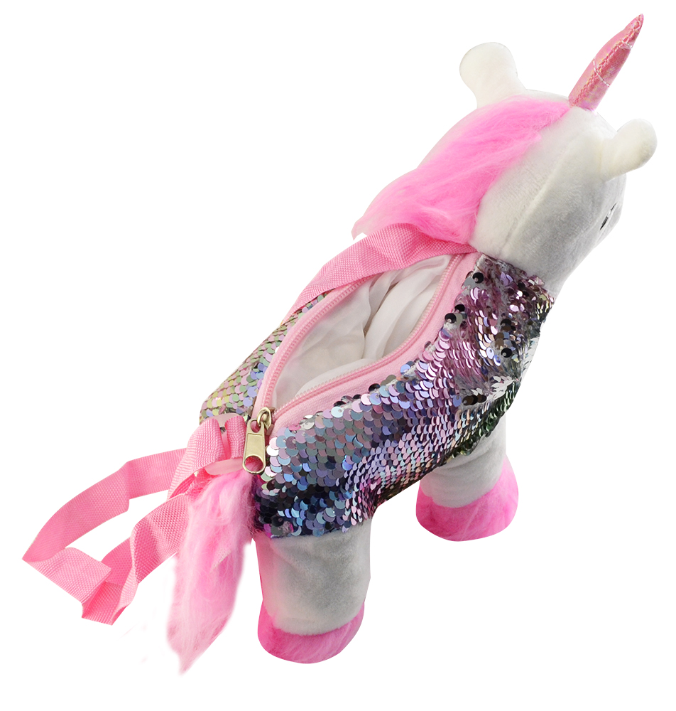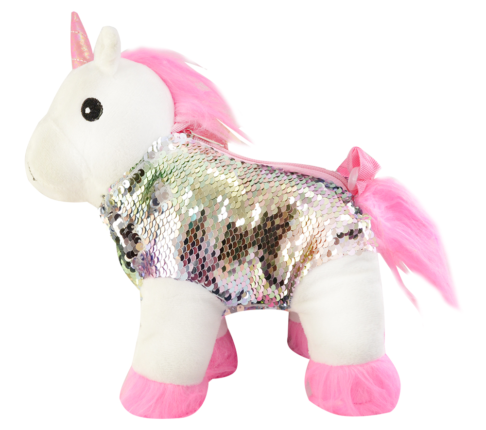 Сумочка детская, плюшевая "Единорог" реверсивные пайетки, молния, ремешок*