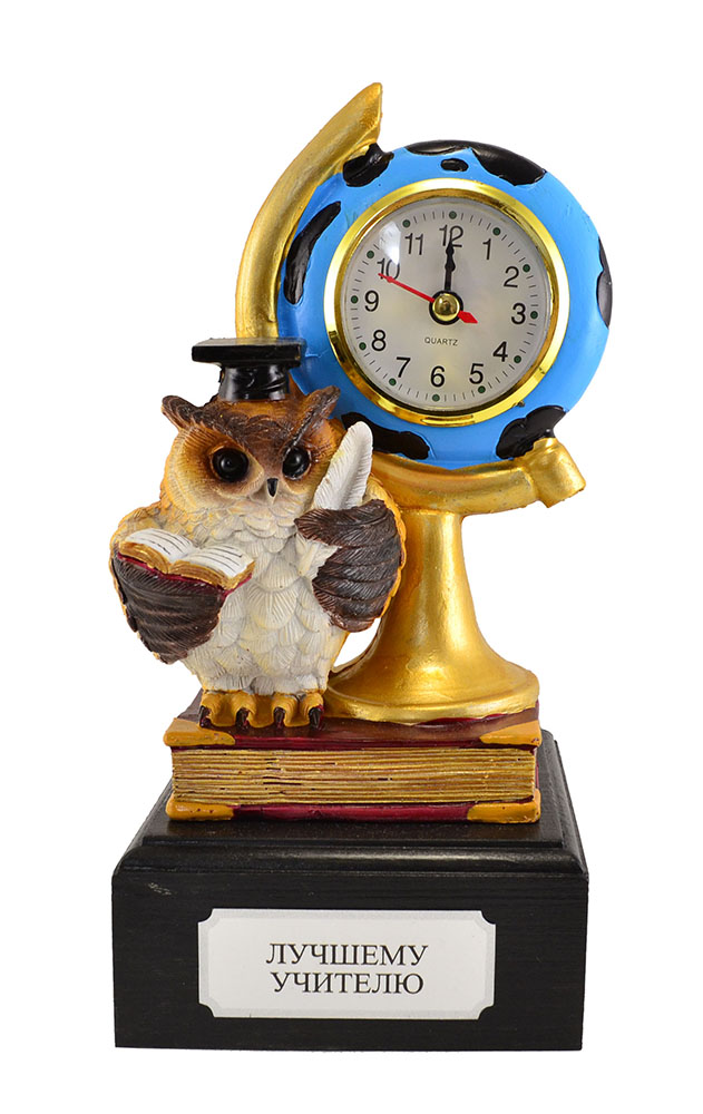 Фигурка выполнена в виде композиции - сова в квадратной шляпе с пером и книгой, стоит у глобуса, который является часами. "Сова ученый" - оригинальный подарок как для педагогов, так и для выпускников детских садов, школ.