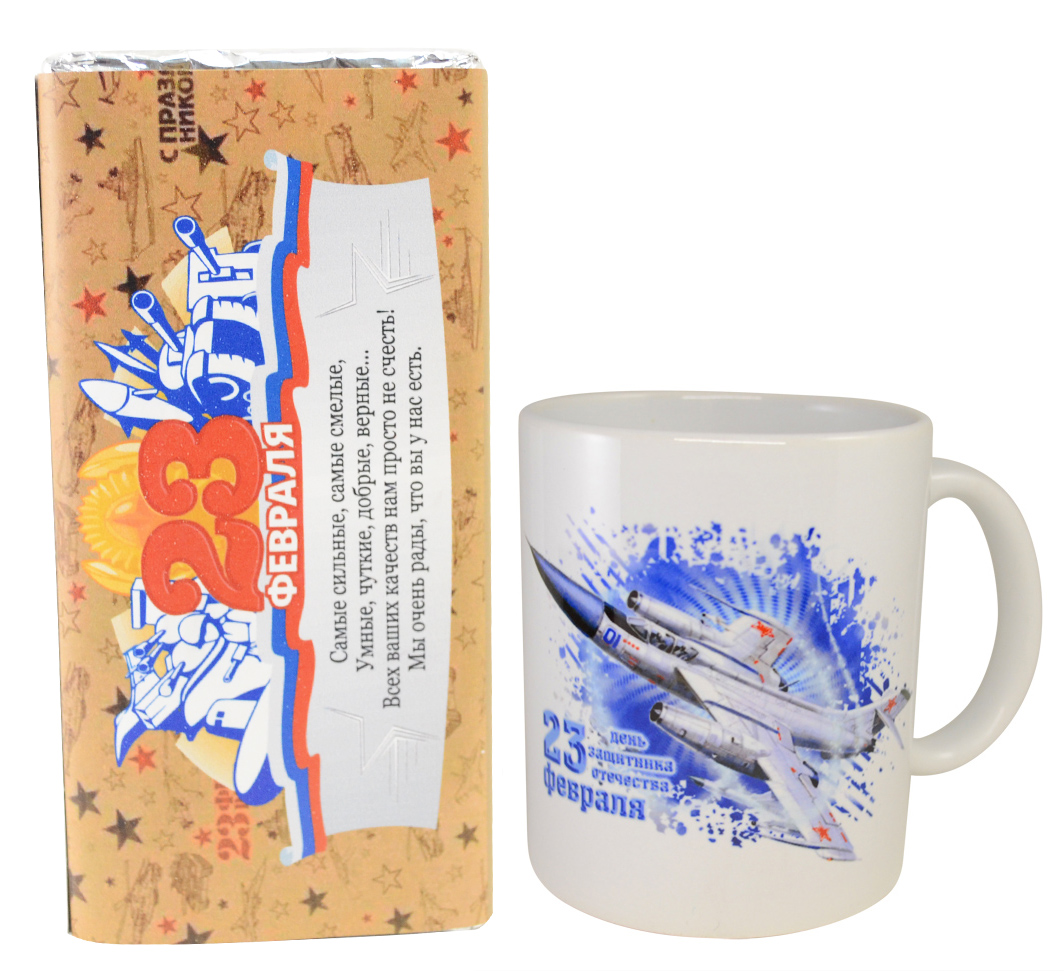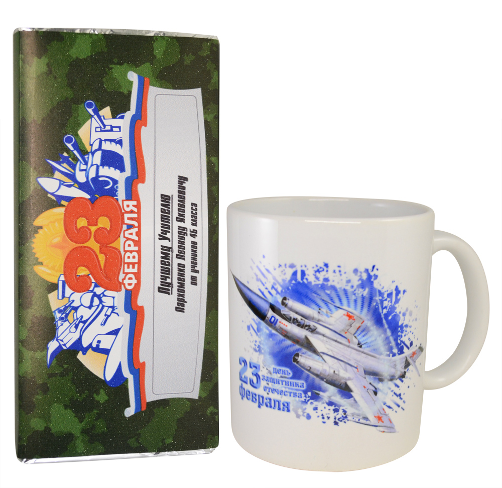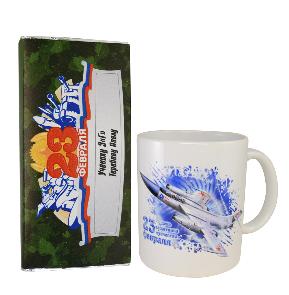 Кружка "С 23 февраля" именным шоколадом