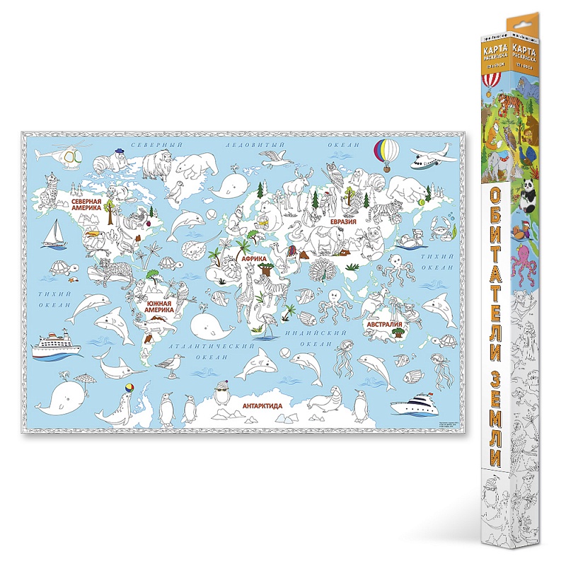 Карта-раскраска "Обитатели Земли", 101*69 см