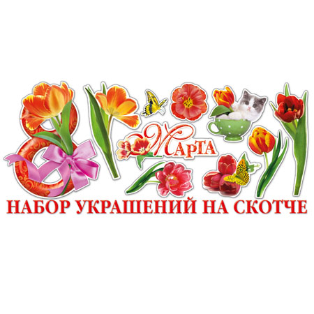 Набор украшений на скотче "8 Марта" Нсс-009