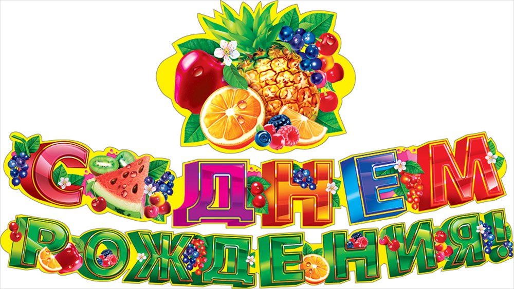 Яркая гирлянда, которой можно украсить помещение на День Рождения. Гирлянда имеет вид надписи "С Днем Рождения!"и украшена фруктами и ягодами. Состоит из восьми элементов, скрепленных люверсами.