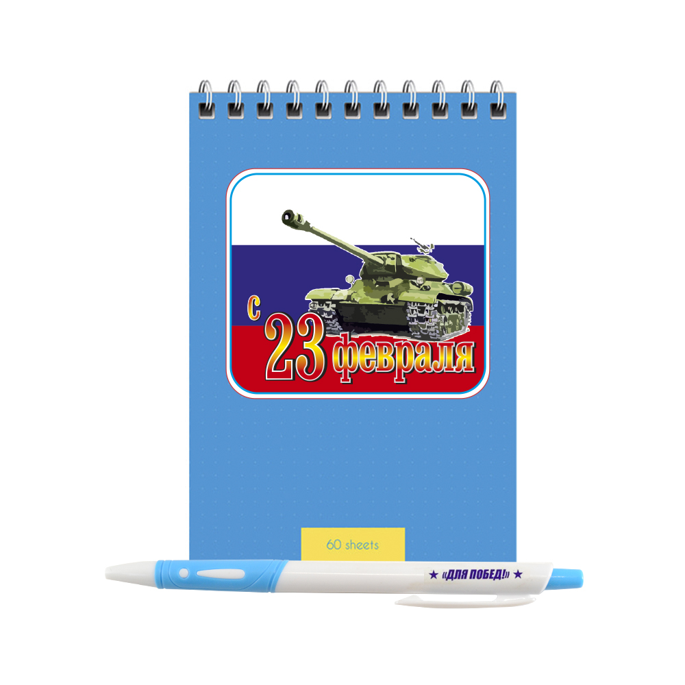 - В наборе : праздничный блокнот и ручка с надписью "Для побед"