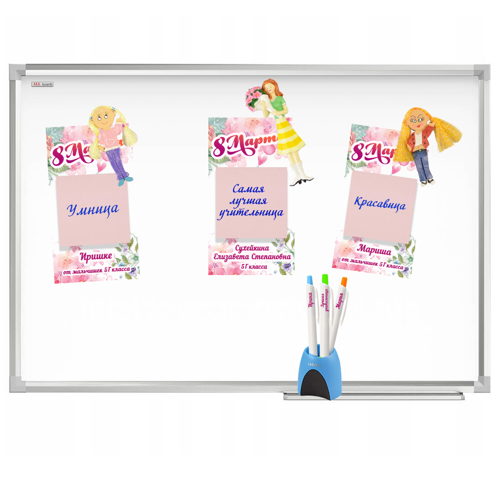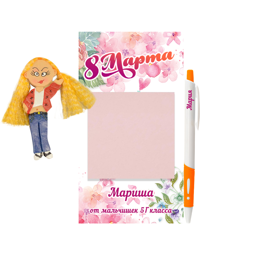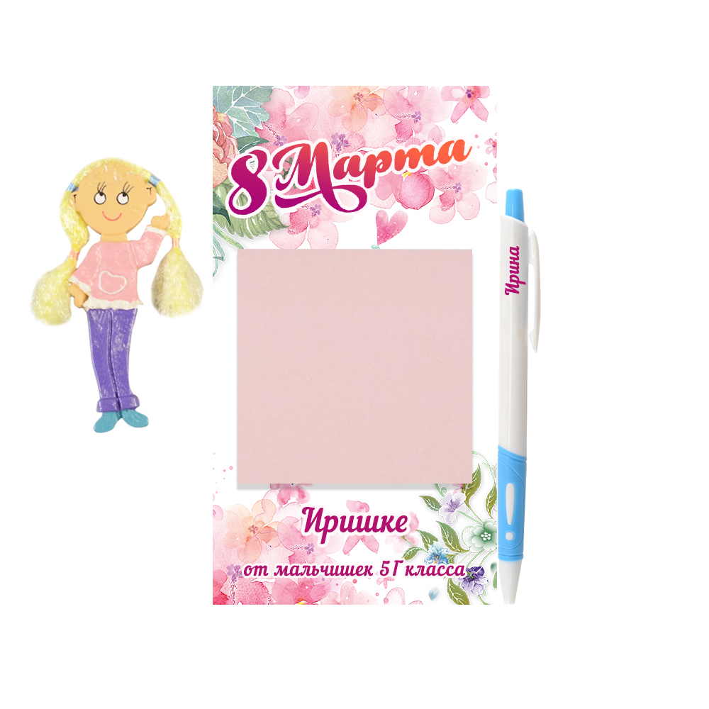 Подарочный набор: блок с бумагой для заметок, именная ручка, открытка и магнит