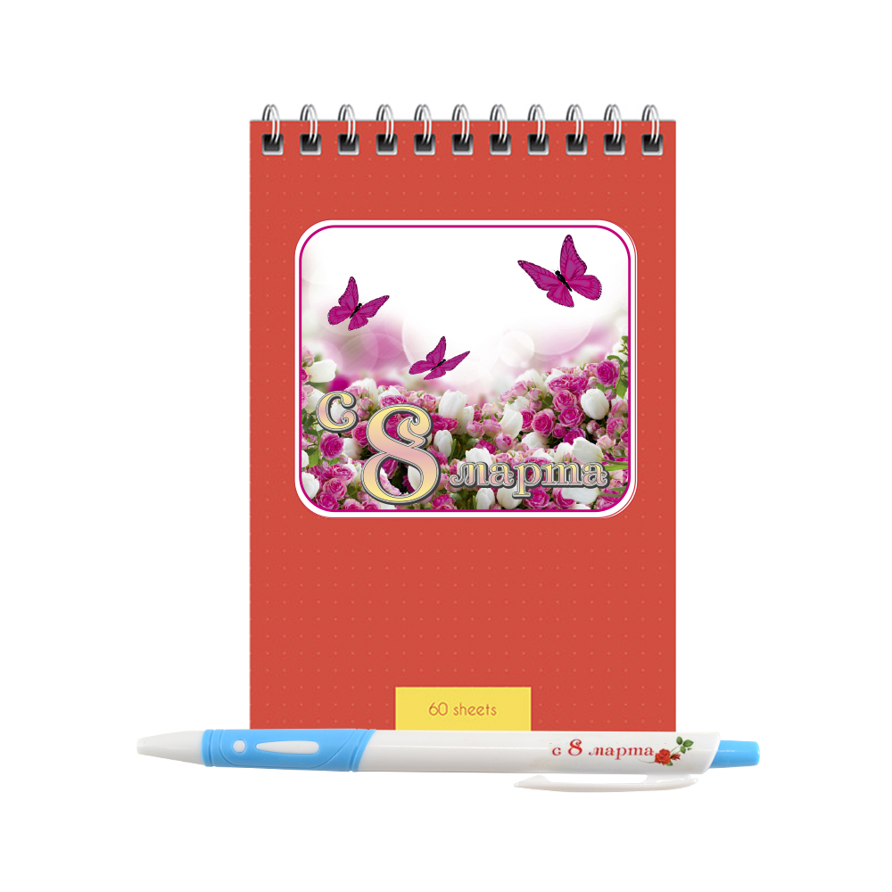 - В наборе : праздничный блокнот и ручка с надписью "с 8 марта"