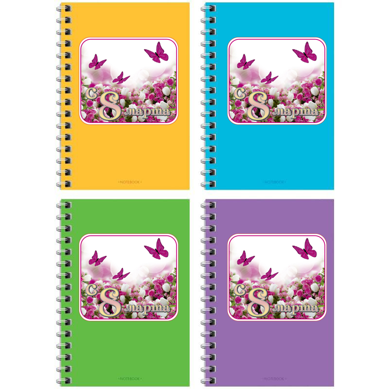 Блокнот формата A6 на евроспирали. Внутренний блок из 60 листов офсетной бумаги плотностью 60 г/м2, в клетку. Обложка изготовлена из мелованного картона.