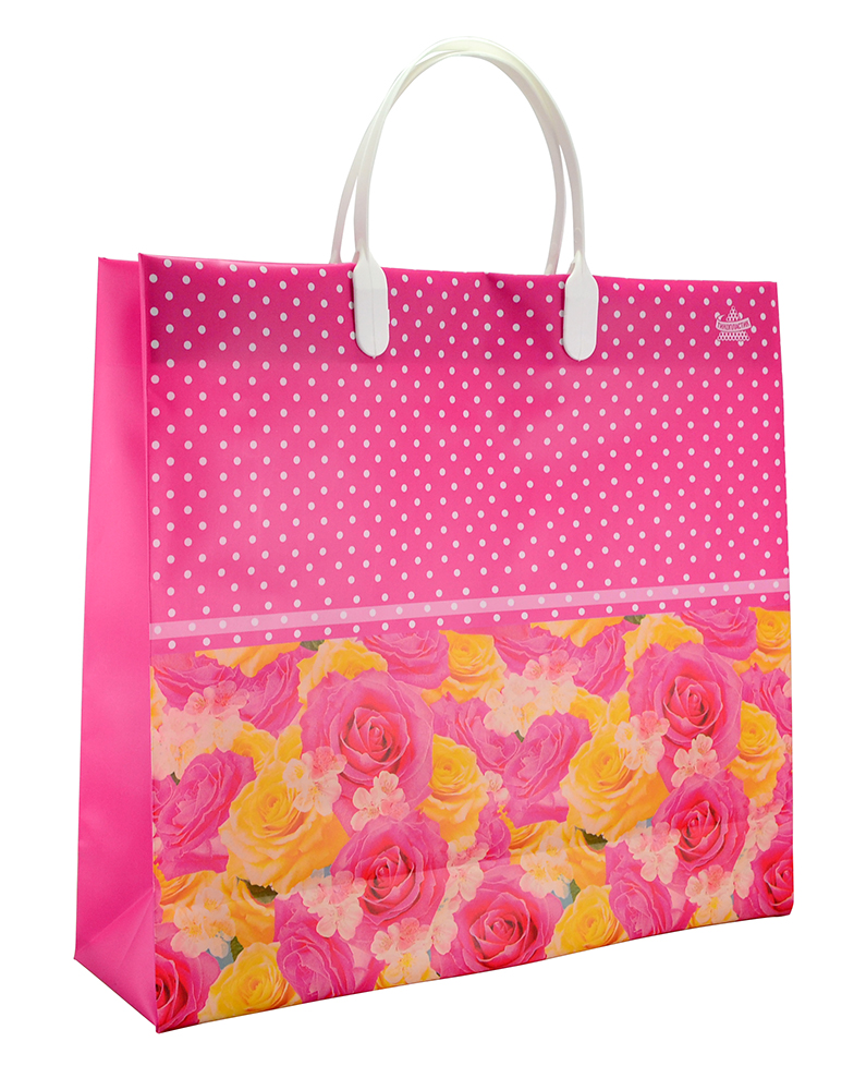 Красивый подарочный пакет с пластиковыми ручками. Пакет сделан из прочного, мягкого пластика с ярким принтом.