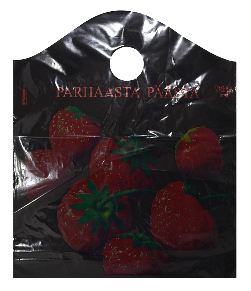 Пакет прорубной черный 35*50+4 см полиэтилен "Клубника финл" круглые ручки