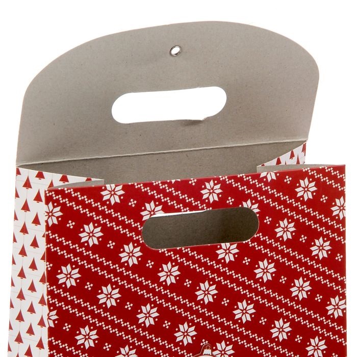 Пакет подарочный с прорубными ручками и клапаном, плотный картон, 18*23*10 см "Новогодний узор"