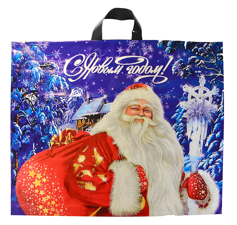 Яркий подарочный полиэтиленовый пакет с удобными и надежными ручками-петлями.