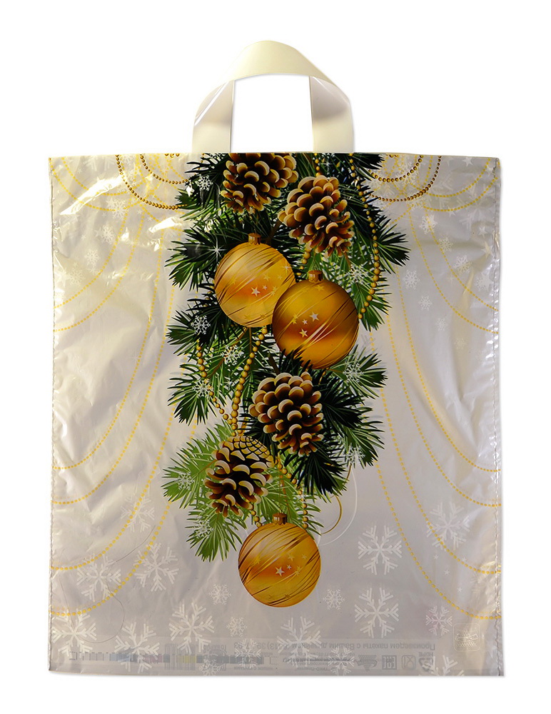 Яркий подарочный полиэтиленовый пакет с удобными и надежными ручками-петлями.