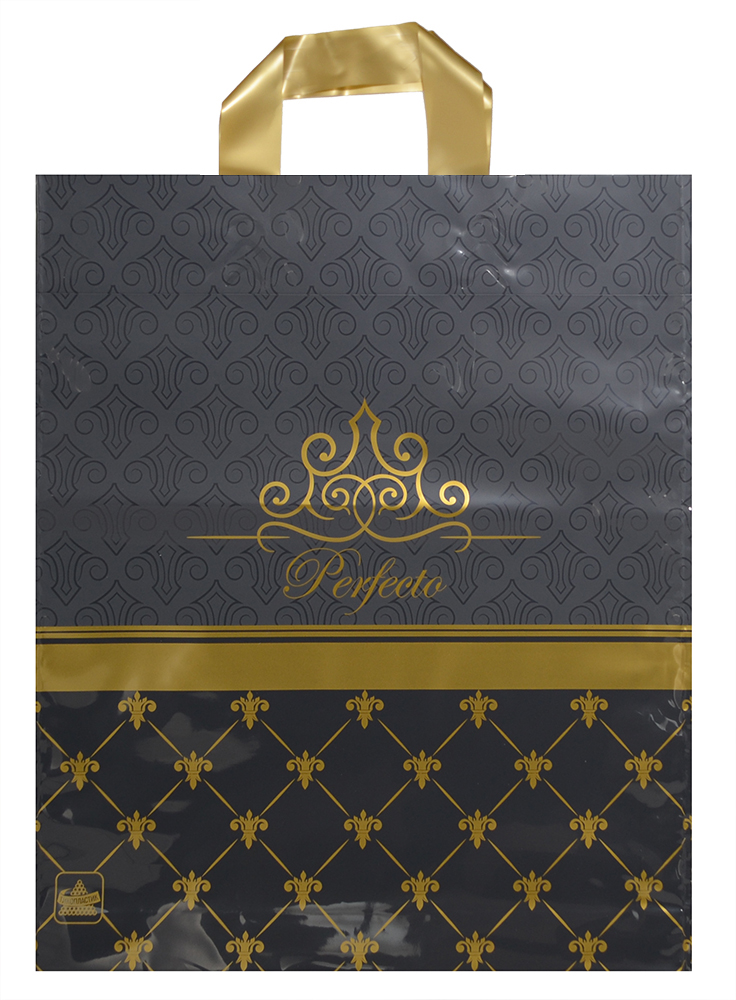 Яркий подарочный полиэтиленовый пакет с удобными и надежными ручками-петлями.