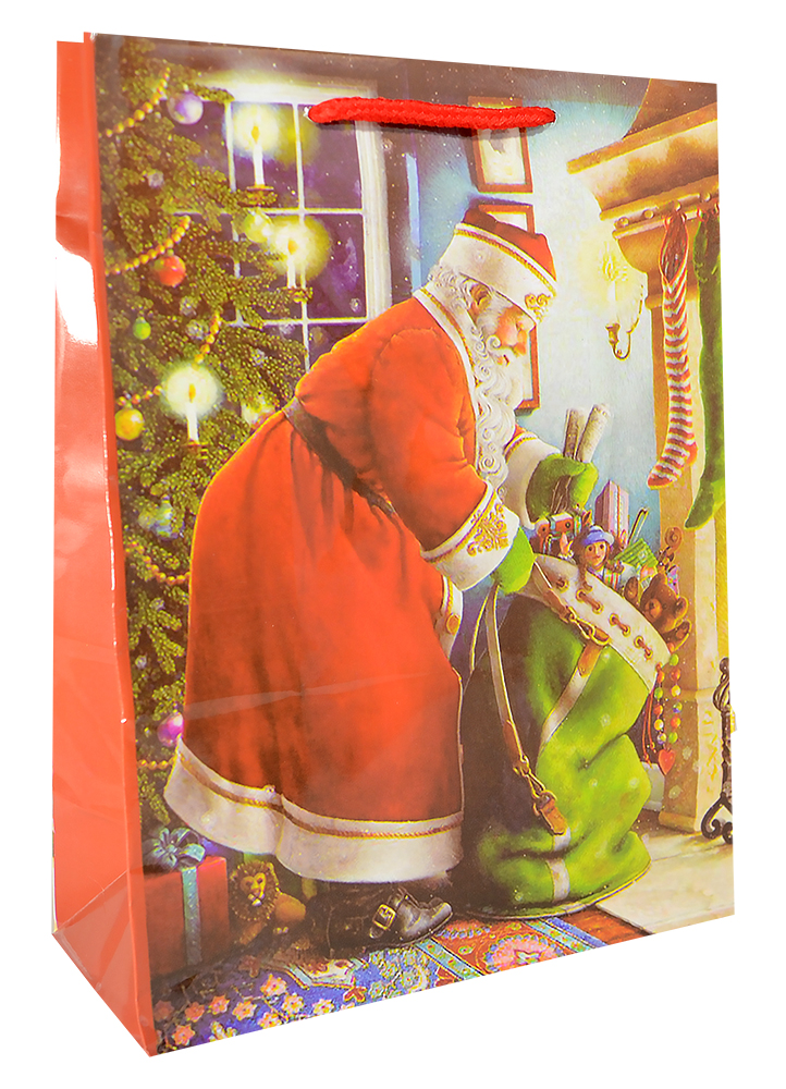 Пакет подарочный бумажный глянцевый "Дед Мороз"120*150*50 мм цветной Basir МС-4149