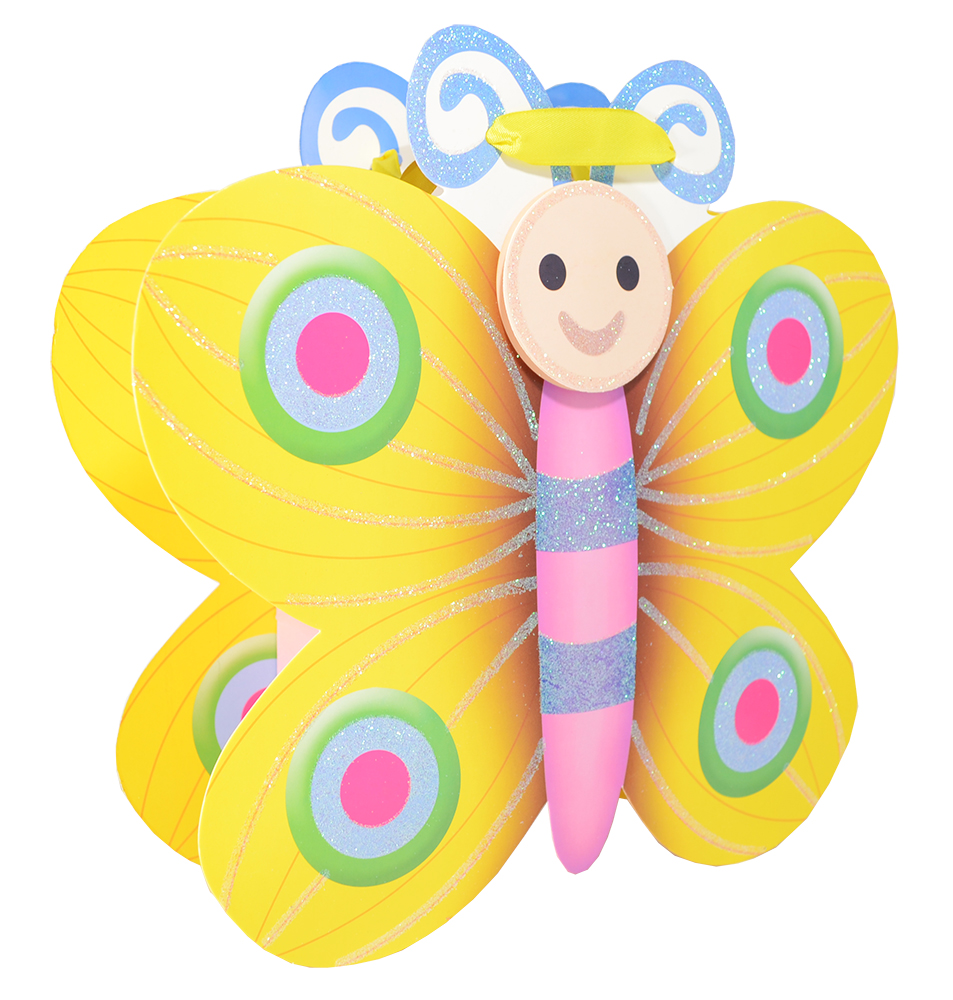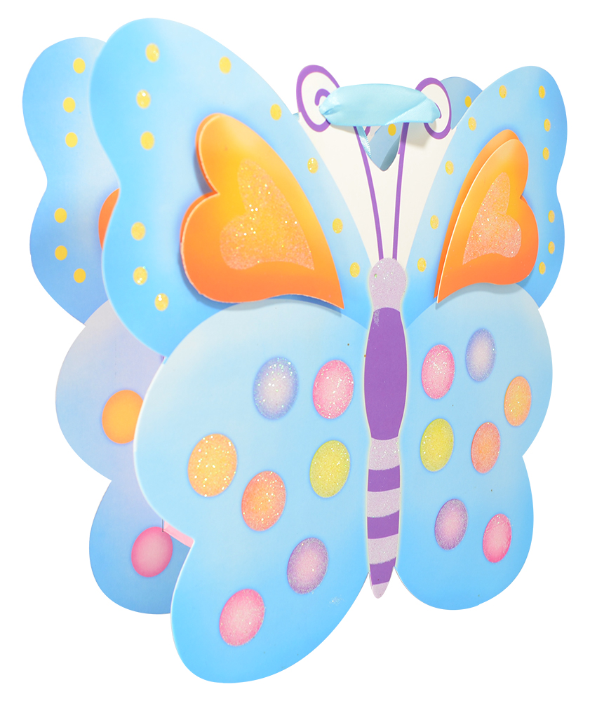 Пакет подарочный бумажный "Бабочка" 27*28*80 см цветной с блестками МС-2321