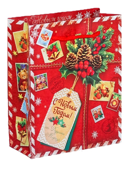 Пакет подарочный бумажный ламинированный 18*23*8 см "Подарок от Деда Мороза"