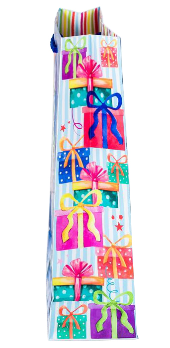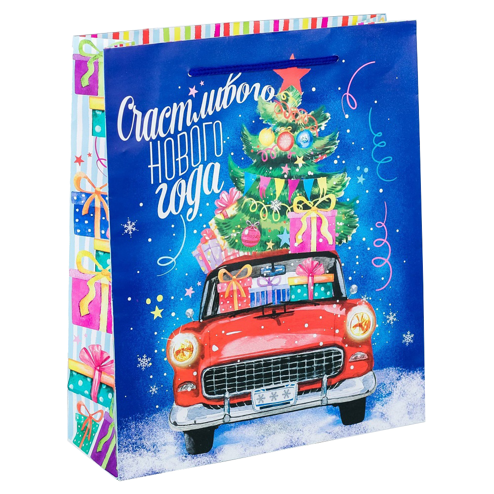 Красивый подарочный пакет с веревочными ручками. Пакет сделан из ламинированной бумаги.