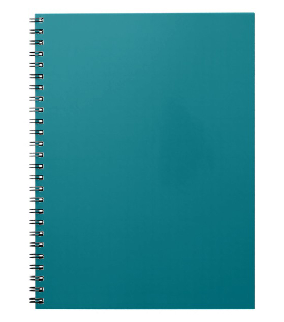 Блокнот формата А4 в твердом переплете на евроспирали. Внутренний блок из офсетной бумаги в клетку, без полей.