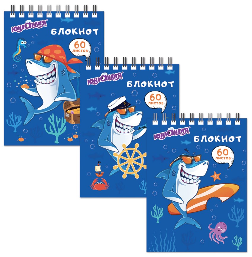 Блокнот А6, 60 листов, клетка Юнландия "Акула-пират" гребень 129833