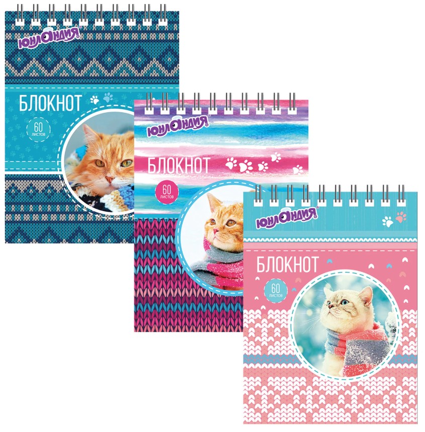 Блокнот А6, 60 листов, клетка Юнландия "Котики" гребень 129831