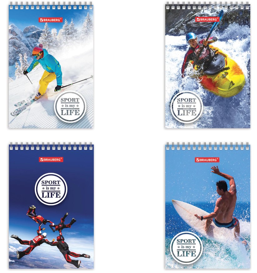 Блокнот А6, 40 листов, клетка BRAUBERG, "Спорт" гребень