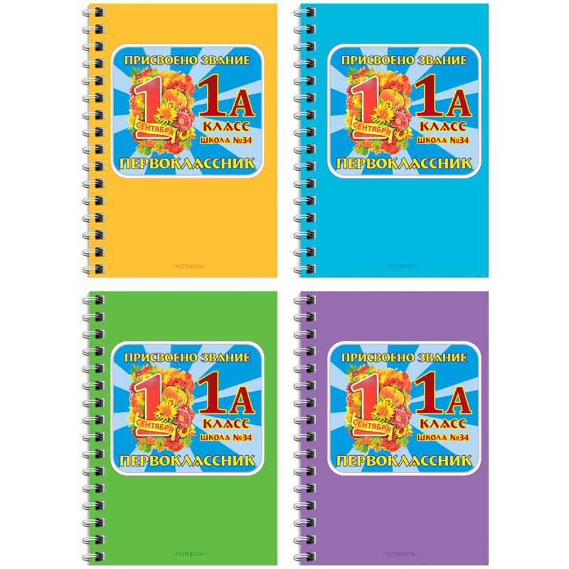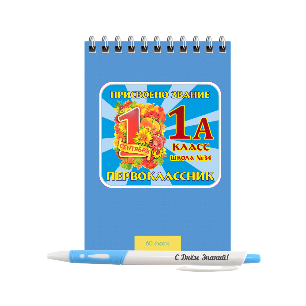 Именной подарочный набор, блокнот и ручка "Присвоено звание первоклассник 1А"
