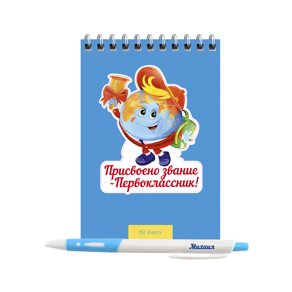Именной подарочный набор, блокнот и ручка "Присвоено звание первоклассник"