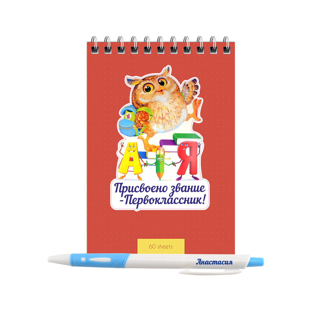 Именной подарочный набор, блокнот и ручка "Присвоено звание первоклассник"