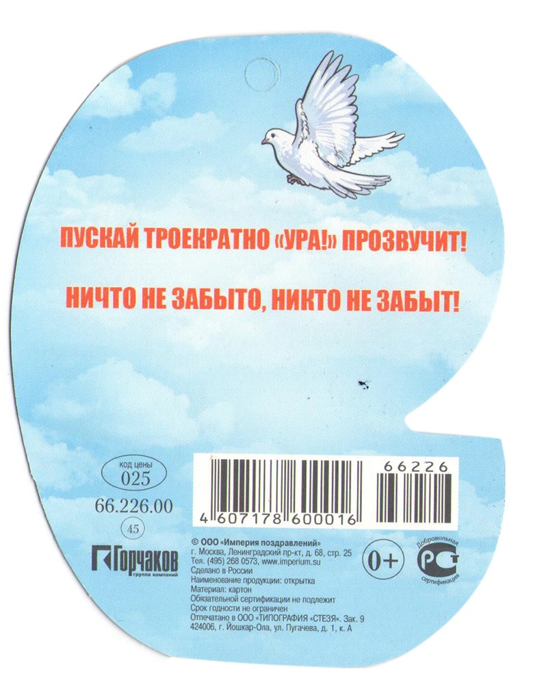 Медаль бумажная "Я помню! Я горжусь", 66.226.00