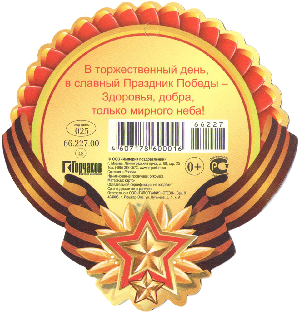 Медаль бумажная "9 мая! День Победы!", 66.227.00