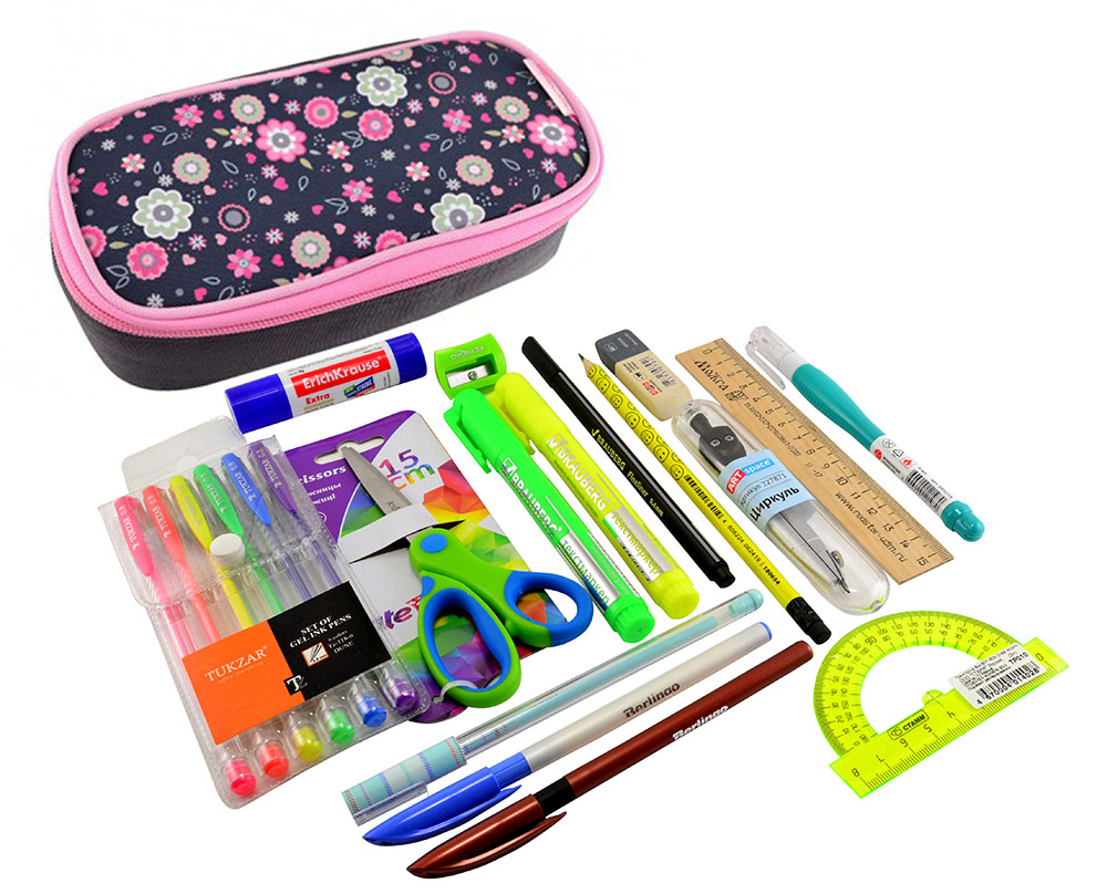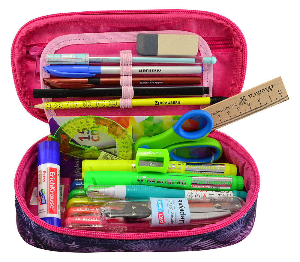 Он достаточно вместительный и в нём может разместиться большое количество разнообразных канцелярских предметов. Внутри каждого пенала есть специальные резиночки-держатели для карандашей, ручек, фломастеров и других пишущих принадлежностей.