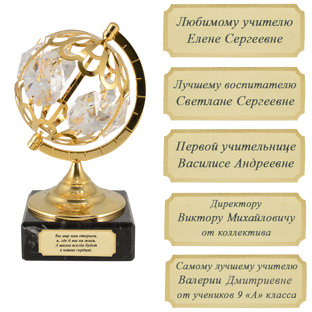 Красивая статуэтка инкрустирован аэксклюзивными кристаллами Swarovski. Станет отличным подарком для педагогов или выпускников детских садов и школ, легко украсит любой интерьер домашнего очага или рабочего места, а памятная надпись сделает этот подарок особенным и запоминающимся!