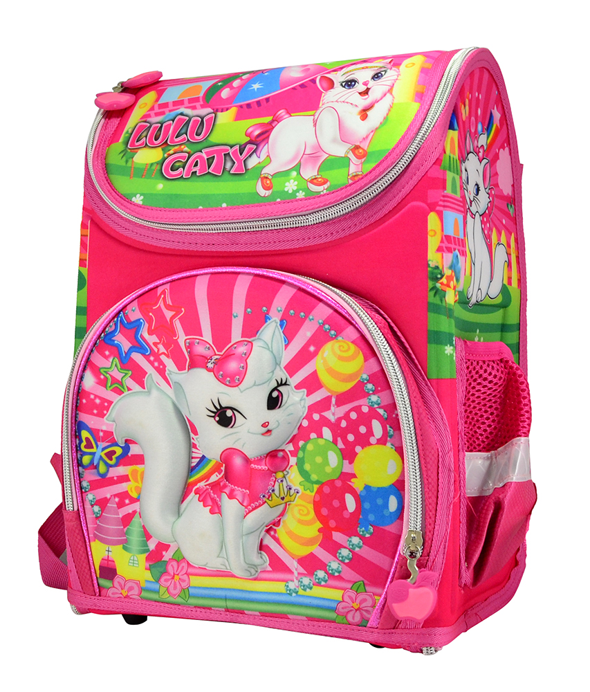 Разборный школьный ранец с уплотненнойй спиной и объемным рисунком на переднем кармане.