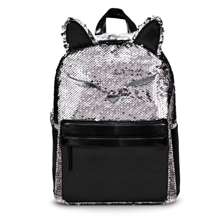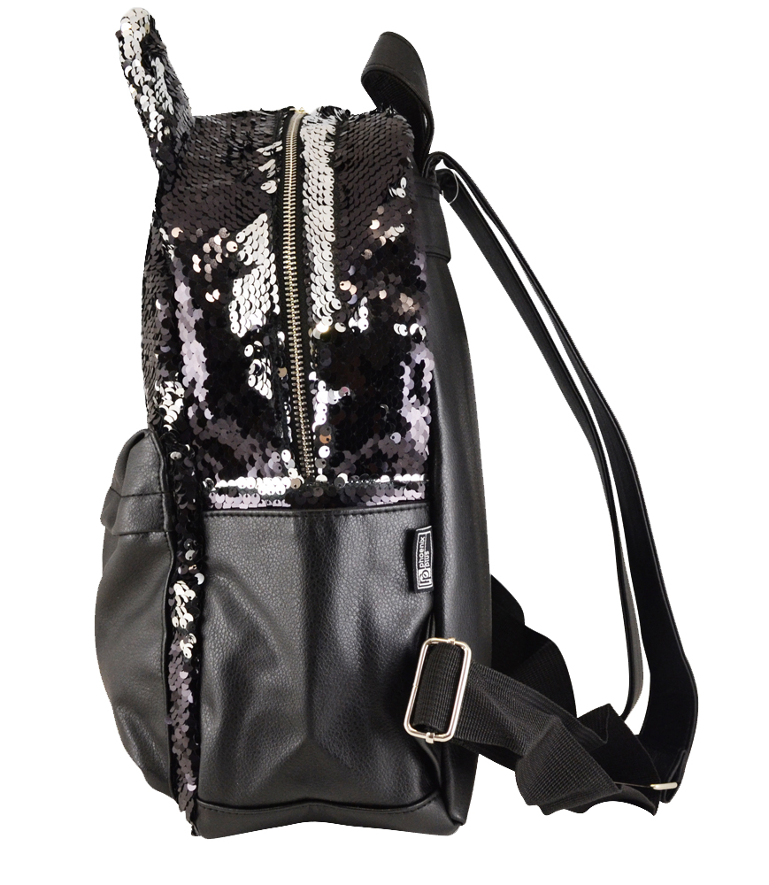 Стильный молодежный рюкзак из искусственной кожи с реверсивными пайетками.