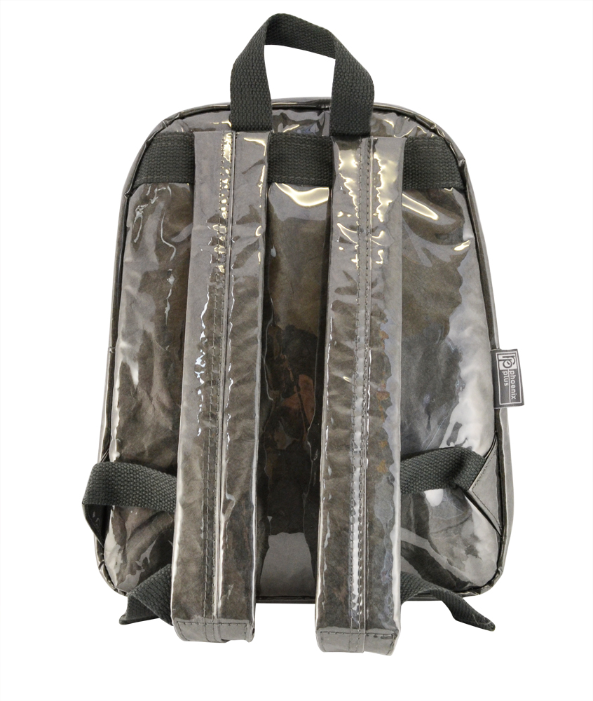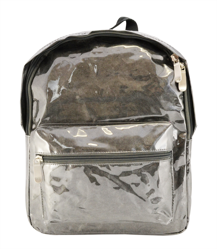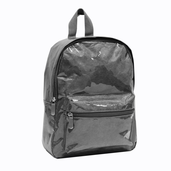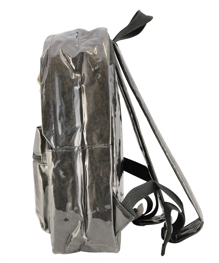 Стильный рюкзак из ПВХ и синтетической бумаги имеет одно большое, вместительное отделение на молнии.