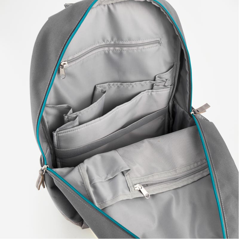 • Карманы: 3 передних, 2 внутренних, 1 потайной на спинке, 2 боковых кармана расширяются с помощью молний.
