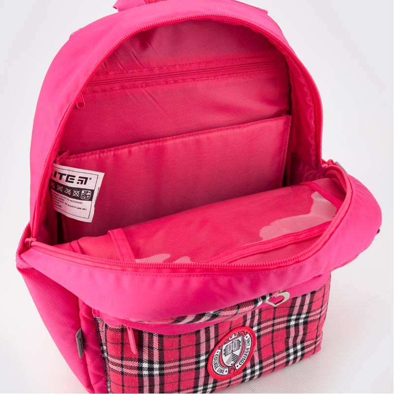 Стильный школьный рюкзак Kite College Line K19-719M-1 сделан из полиэстера ярко-розового цвета с фактурной отделкой в клетку. Стиль Колледж Лайн дополняет фирменная эмблема, а бантик и подвеска в виде сердца добавляют дизайну романтичности. Модель разработана для девочек 6-10 лет.