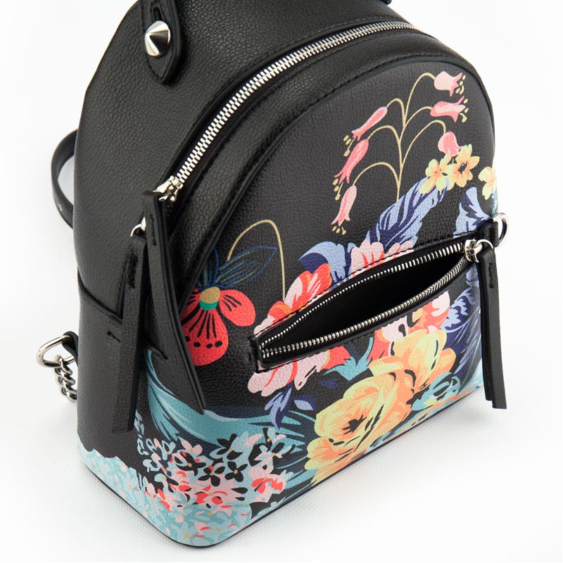 Рюкзак Kite K18-2524XXS выполнен из эко-кожи черного цвета с ярким цветочным принтом. Имеет подкладку в тон. Этот миниатюрный аксессуар разработан для утонченных девушек, которые берут от жизни все и не обращают внимание на мелочи. Удобный дизайн и базовый функционал создают ощущение легкости и комфорта. Изделие состоит из одного просторного отделения, переднего и 2 внутренних карманов - открытого и на молнии. Отделение закрывается на металлическую молнию. Внутри изделия на эко-коже вытеснен логотип Dolce на кармане. Мягкая спинка, регулируемые лямки и небольшой вес, всего 350 г, делают изделие необременительным для пользователя. Надежная фурнитура выполнена из качественного материала. Kite Dolce - это незаменимый аксессуар на каждый день, который дополнит повседневный стиль и будет уместным под изысканные дорогие туфли. Подарите себе удобный и ультрамодный рюкзак!