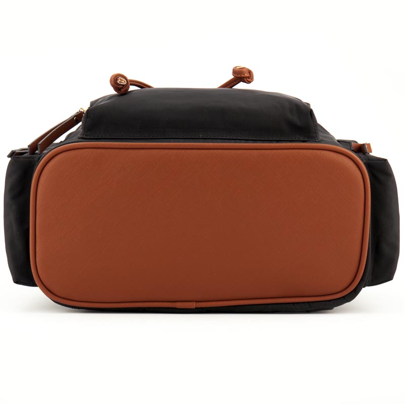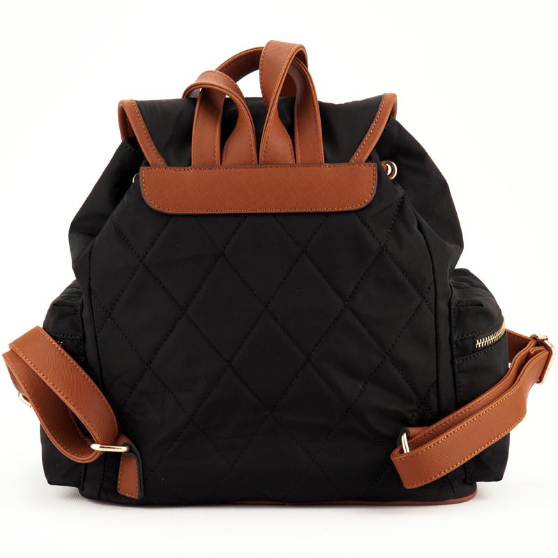 Надежная фурнитура выполнена из качественного металла золотистого цвета. Уплотненное дно, ручка-петля, лямки и пуллеры изготовлены из коричневой эко-кожи.