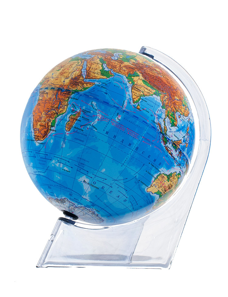 Глобус с физической картой мира на удобной пластиковой подставке даст возможность наглядно показать ребёнку, что представляет собой наша планета, как на ней располагаются материки. Глобус займёт немного места, в отличие от настенной карты. Отличное качество печати, насыщенные цвета. Глобус изготовлен из пластика, вращается вокруг собственной оси.
