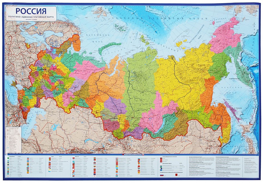 Карта полностью на русском языке. Данная модель пользуется особенным спросом в учебных учреждениях, офисах и других организациях. Карта очень функциональна: она позволяет ориентироваться в современном политическом устройстве России и в ее географических особенностях.