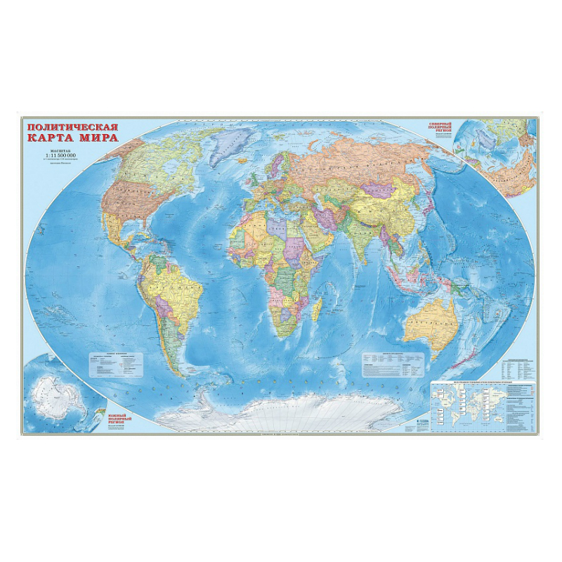 Карта настенная "Мир политический" М1:11,5 млн, 230*150 см, ламинированная