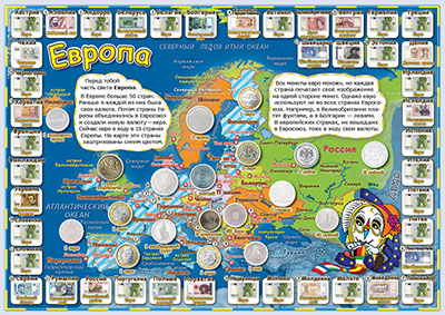Интересный атлас, посвященный разным валютам мира. Дети узнают, как выглядят банкноты и монеты в разных странах.