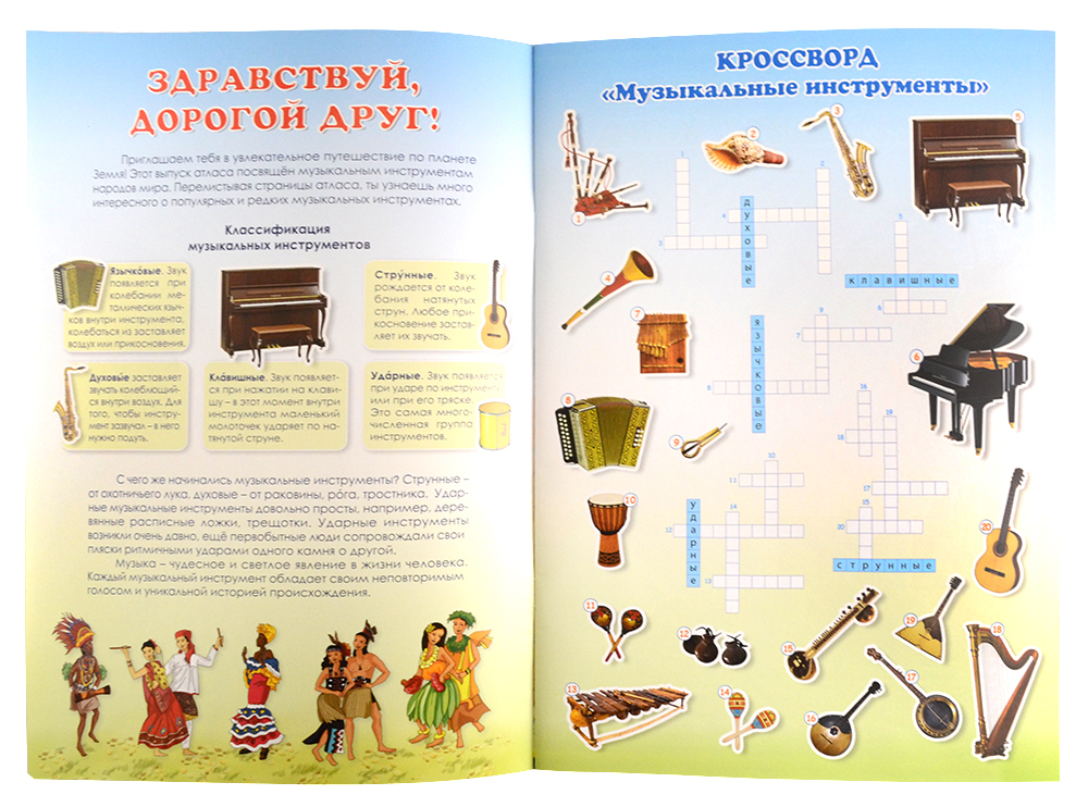 Детский атлас МИРА с наклейками "Музыкальные инструменты" 9785906964632