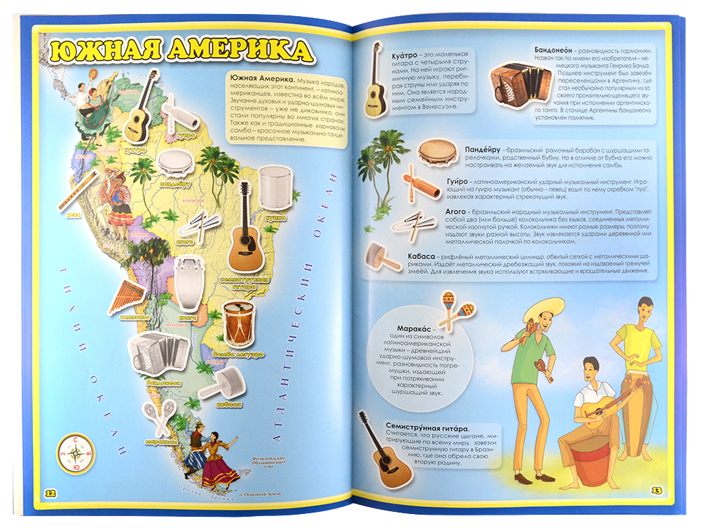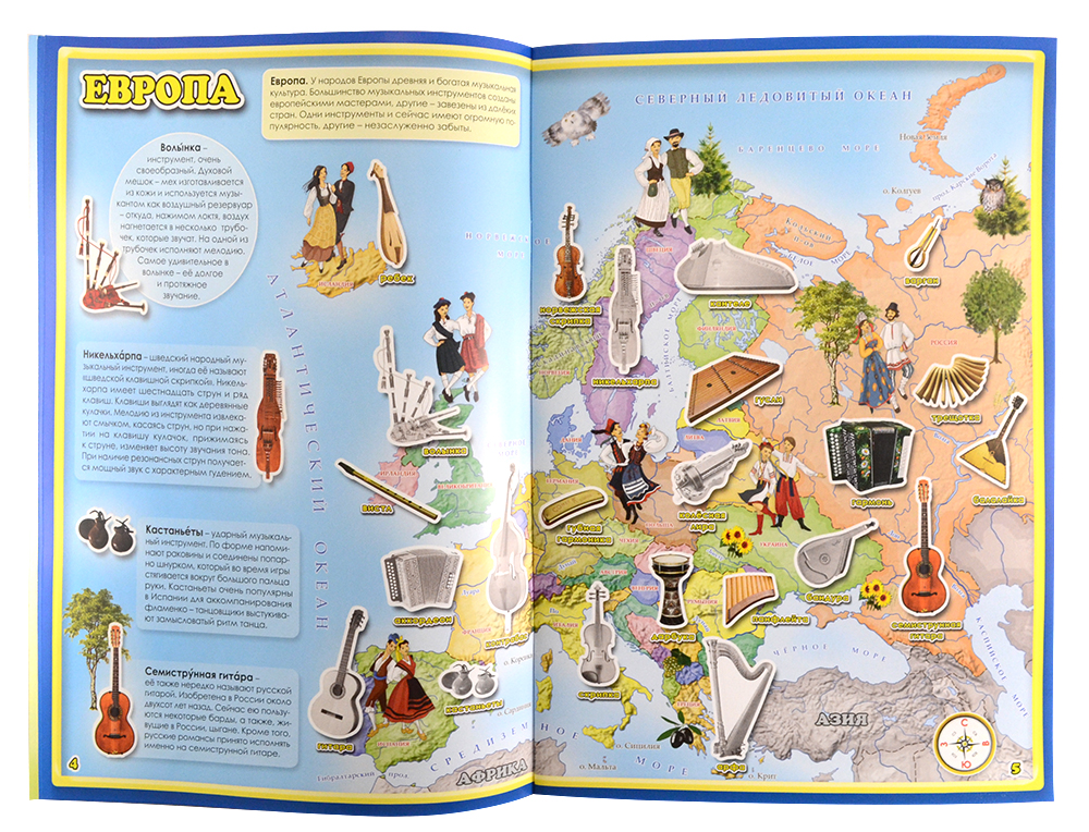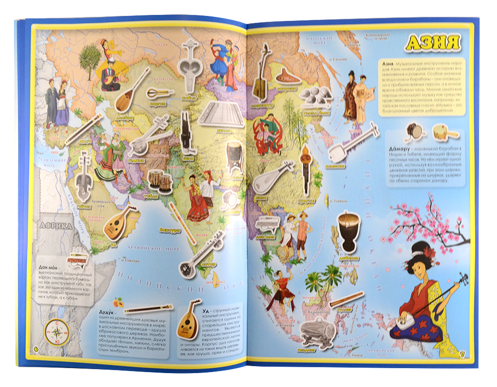 Этот выпуск детского атласа с наклейками посвящен музыкальным инструментам народов мира. Перелистывая страницы, ребенок узнает много интересного о популярных и редких музыкальных инструментах. Каждый музыкальный инструмент обладает своим неповторимым голосом и уникальной историей происхождения. Все это предстоит узнать ребенку в нашем атласе про музыкальные инструменты.