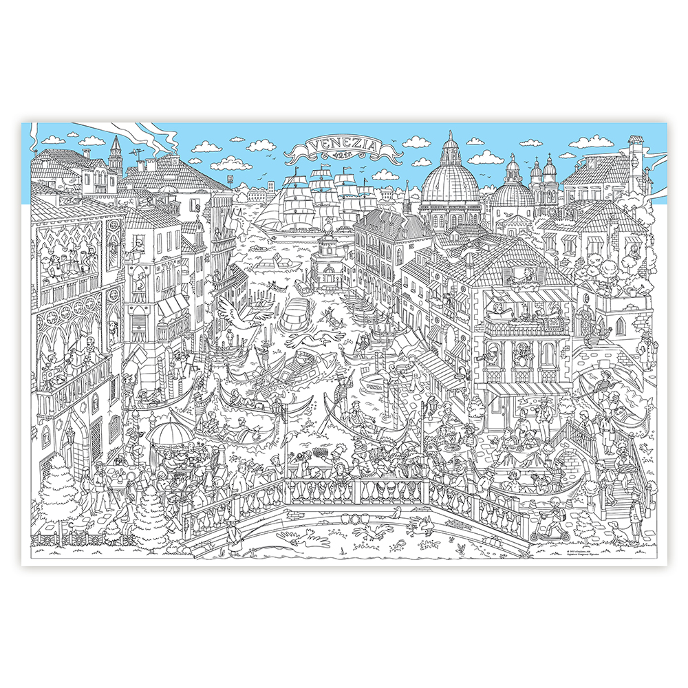 Раскрасьте Венецию, придав городу неповторимую индивидуальность. Рисунок содержит множество деталей, что делает процесс раскрашивания увлекательным и интересным для детей и взрослых.