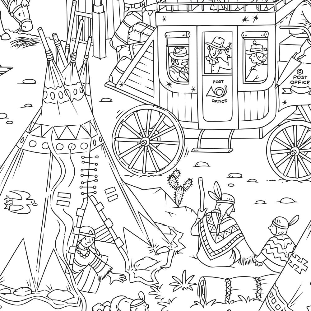Карта-раскраска «Дикий Запад» из серии «Познаю мир» - это увлекательная прогулка в историю, во времена освоения Великих равнин Северной Америки. Первый североамериканский паровоз громким гудком оповещает о прибытии в новый городок Дикого Запада. Город ещё строится, а переселенцы уже приезжают самостоятельно или с почтовым фургоном каждый день. Их встречает важный шериф, который внимательно следит за порядком. Совсем рядом, за рекой, поселение индейцев – коренных жителей Америки. У них свой, неповторимый быт, обычаи и традиции.