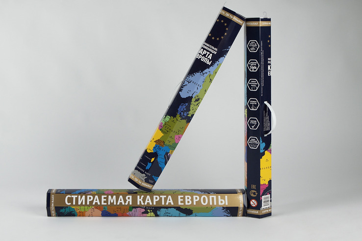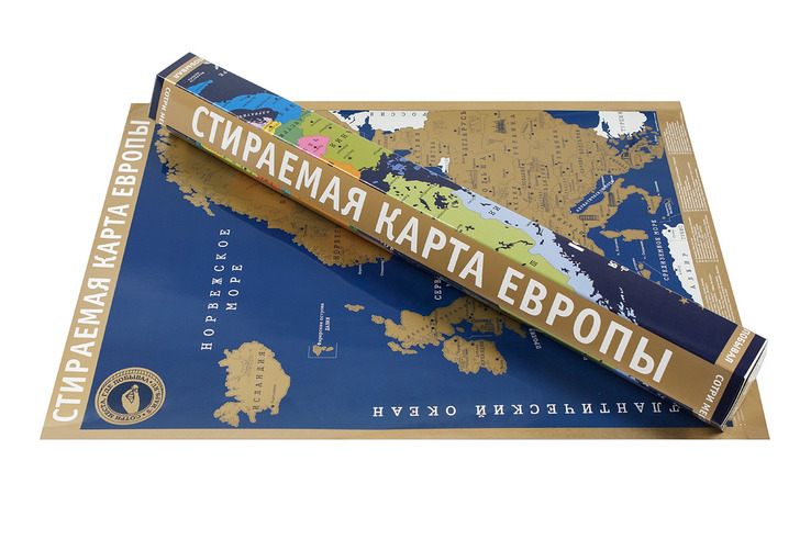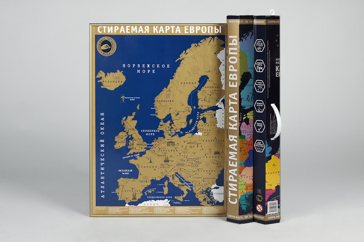 Карта Европы покрытая золотой, стирающейся скретч-краской в оригинальном картонном тубусе с пластиковой ручкой. Все прелести и достопримечательности так близкой нам Европы. Отмечай места где побывал и планируй будущие поездки по легендарным местам любимой Европы.
