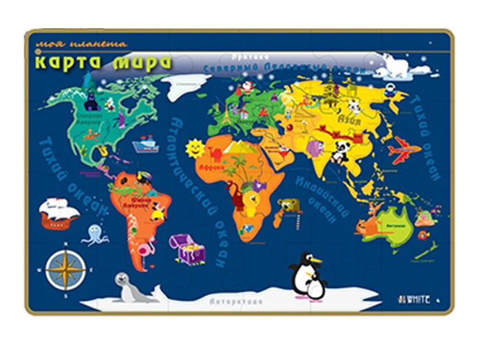 Напольный Пазл «Карта Мира» обучает детей географии, знакомит с животными и средой их обитания. В собранном виде размер карты-пазла составляет 90*60 см. Размеры деталей достаточно большие (15*15 см) для того, чтобы их собирал ребенок, сидя на полу. Отличный вариант для малышей!