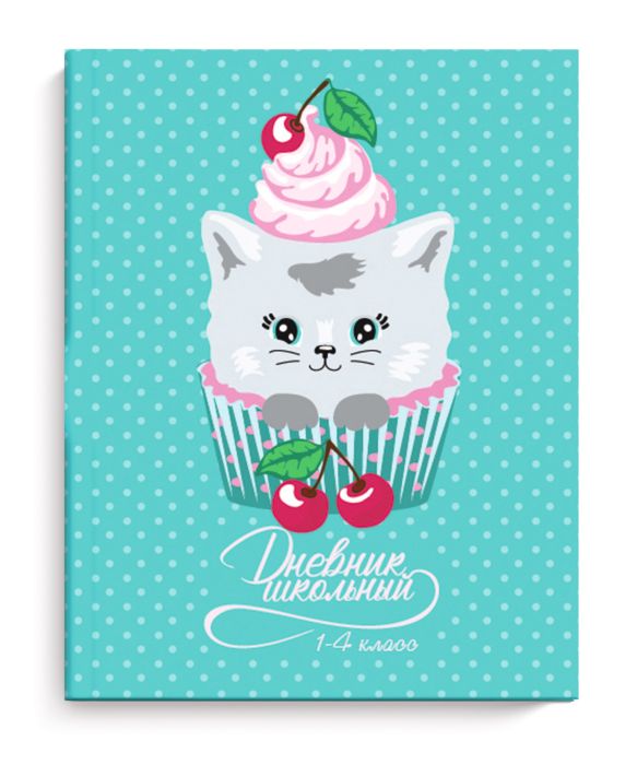 Дневник 1-4 класс, 48 листов "Котик-капкейк" твердый переплет, глянцевая ламинация, шпаргалка для младших классов