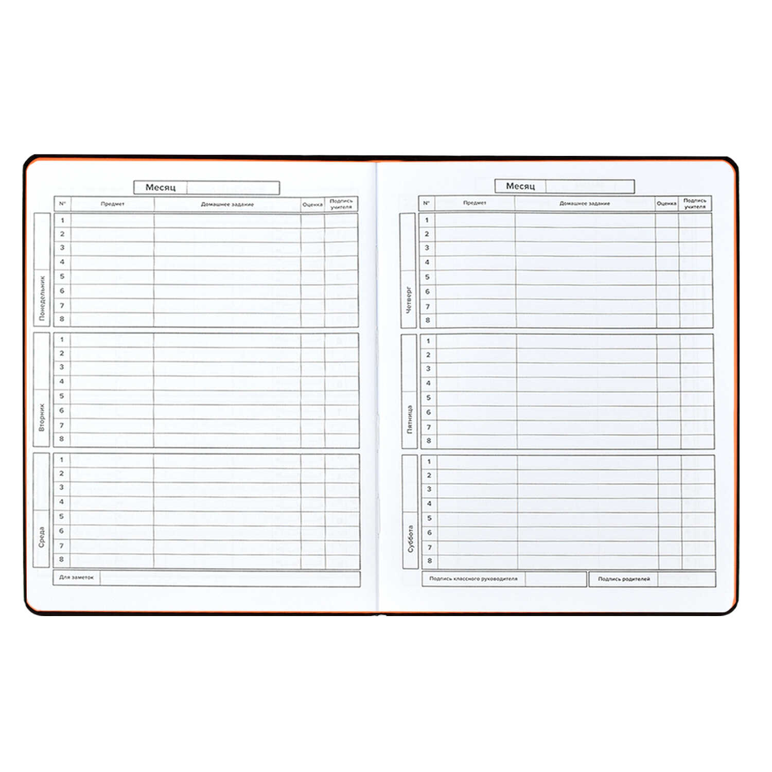 Дневник школьный А5 48 листов из кожзам в твердом переплете с тиснением фольгой. Имеет одно ляссе и универсальную шпаргалку.